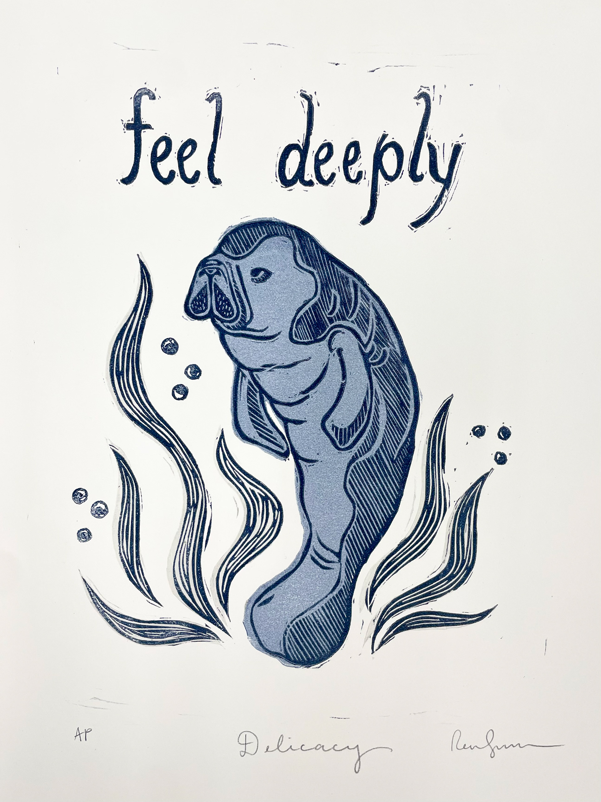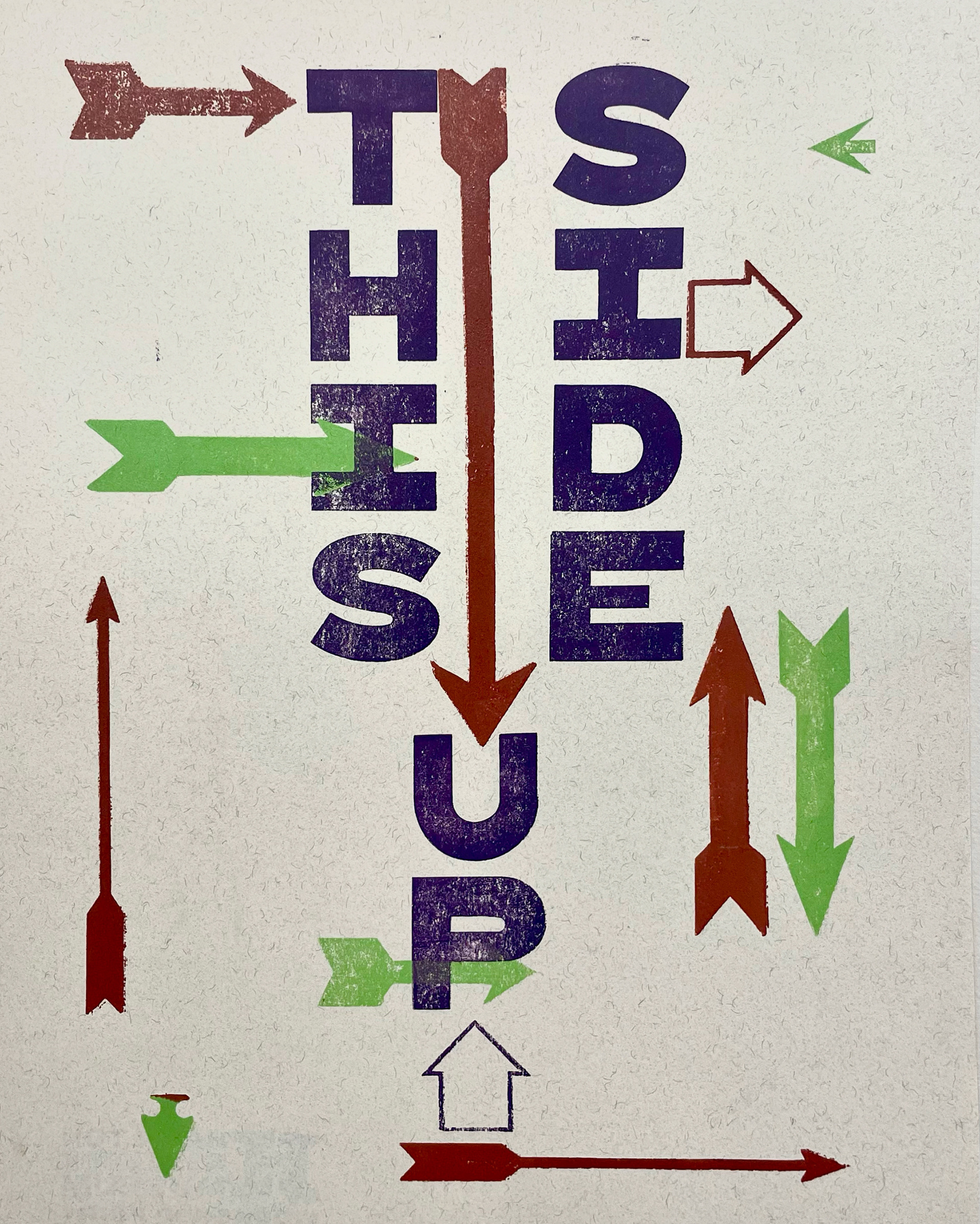 Techniques and materials vary, such as linocut, woodcut, and reduction.